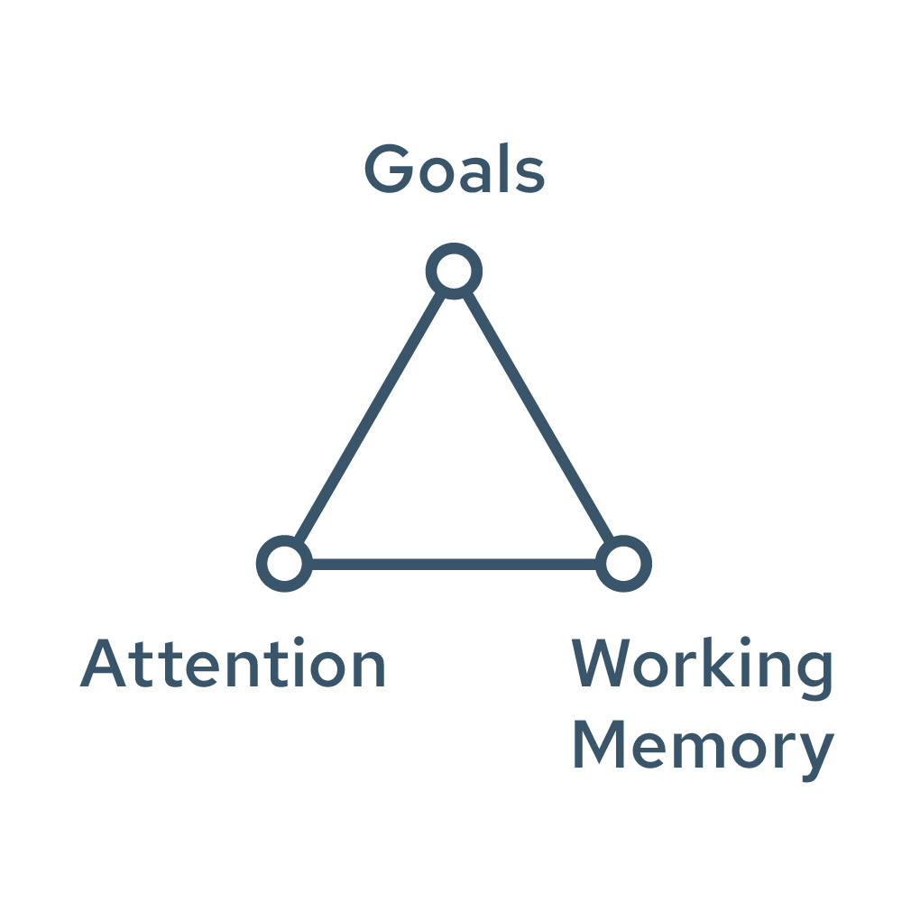 Your brain is always in conflict between bottom-up and top-down attention, which are influenced by your goals and in turn determine where your working memory is used. In order to perform tasks well and help your brain function at its highest level, you have to know how to navigate your own cognitive control triad.